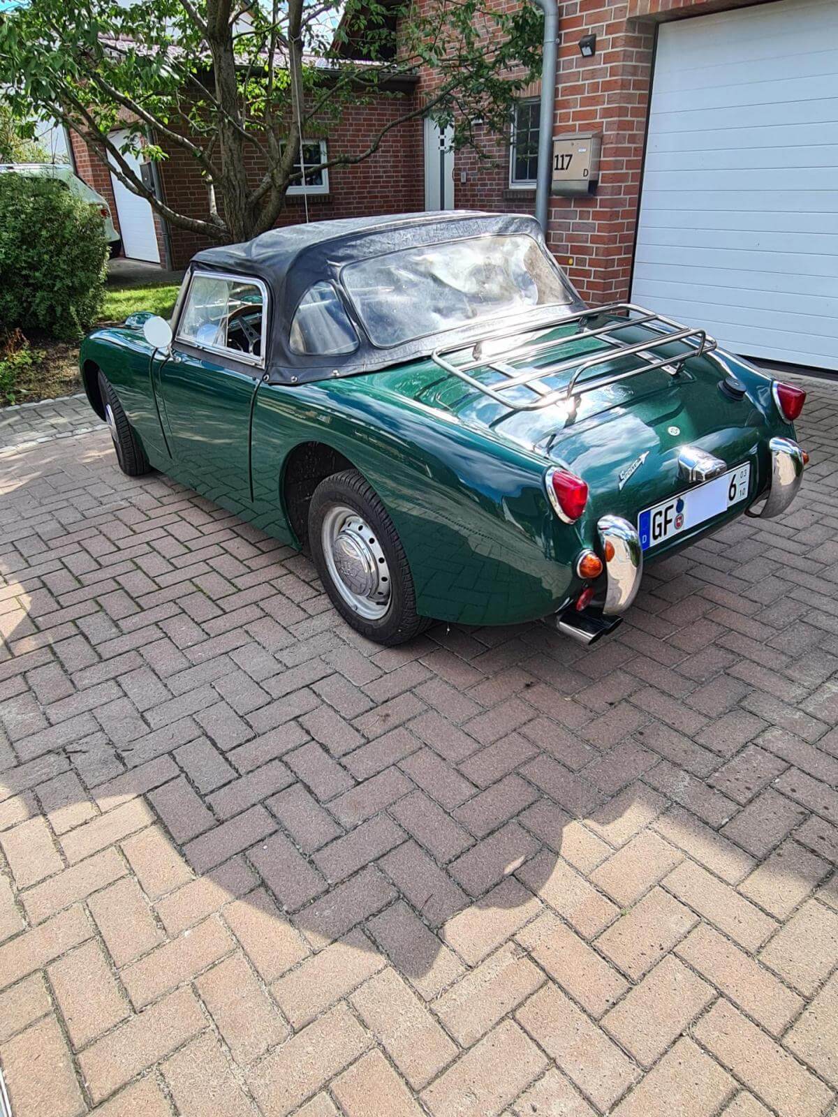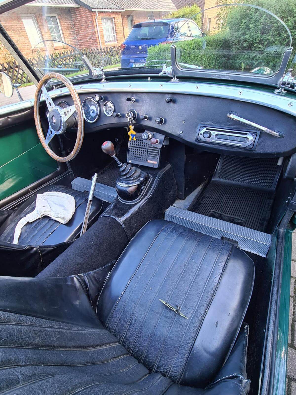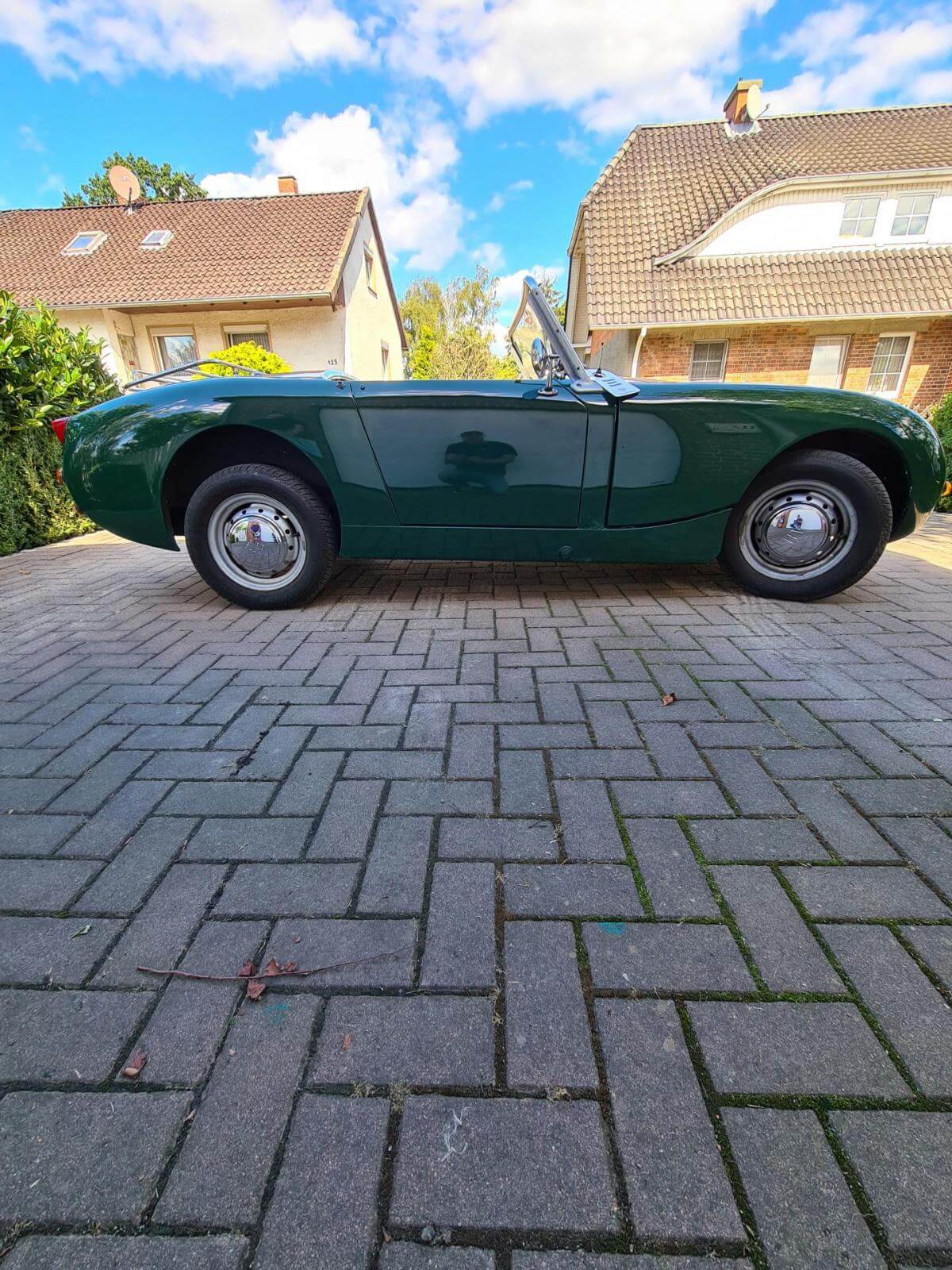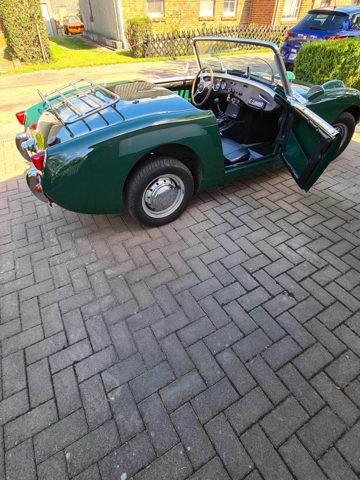 - Der Frosch hat den großen Motor mit 1.275 cm3 und 67 PS. Dies ist jedoch nicht in den Papieren eingetragen, sondern diese weisen nach wie vor 948cm3 aus. Dies war bei Kauf in 2006 schon so und wurde wohl damals in Kalifornien eingebaut. - Sehr viel Zubehör wie z.B. Verdeck, Cabrio-Abdeckung, Brooklands-Scheiben, Healey-Radkappen, Moto-Lita Holzlenkrad, Healey Gummimatte, Winterabdeckung. -Betriebsanleitung und Werkstatthandbuch in Deutsch vorhanden.Bekannte Mängel