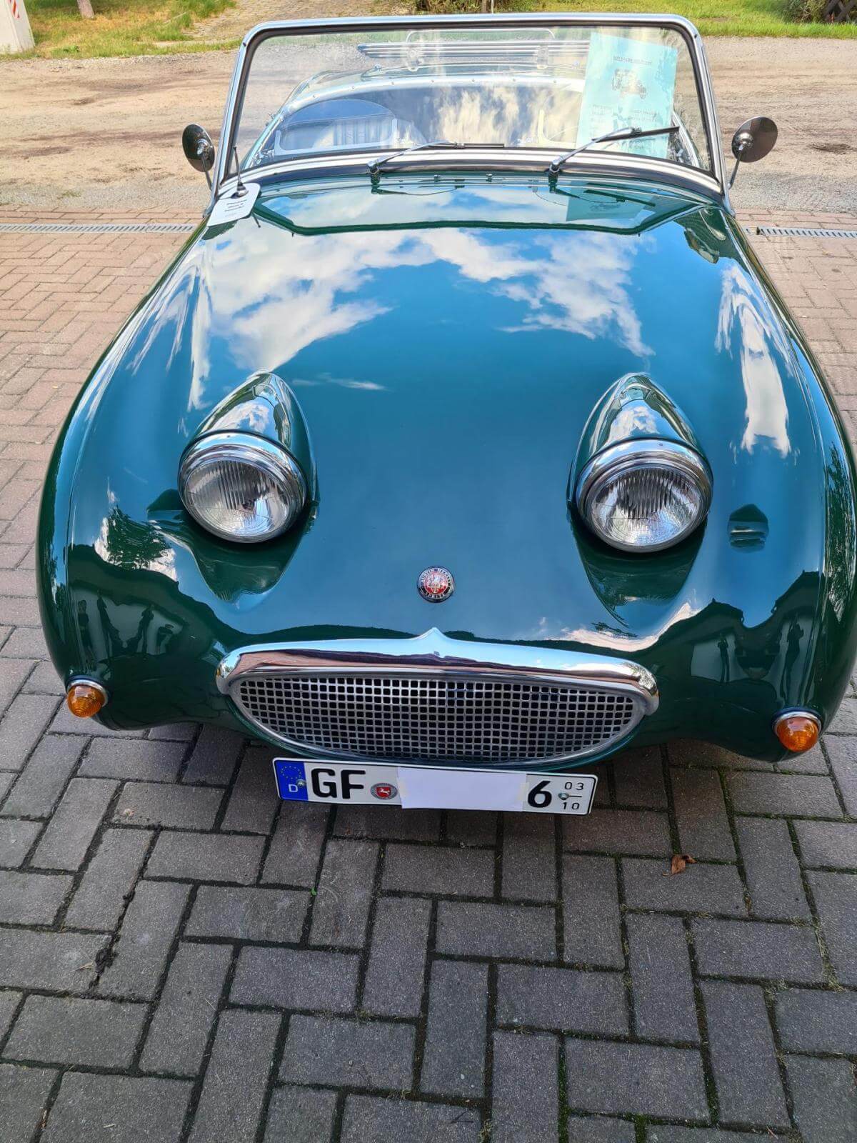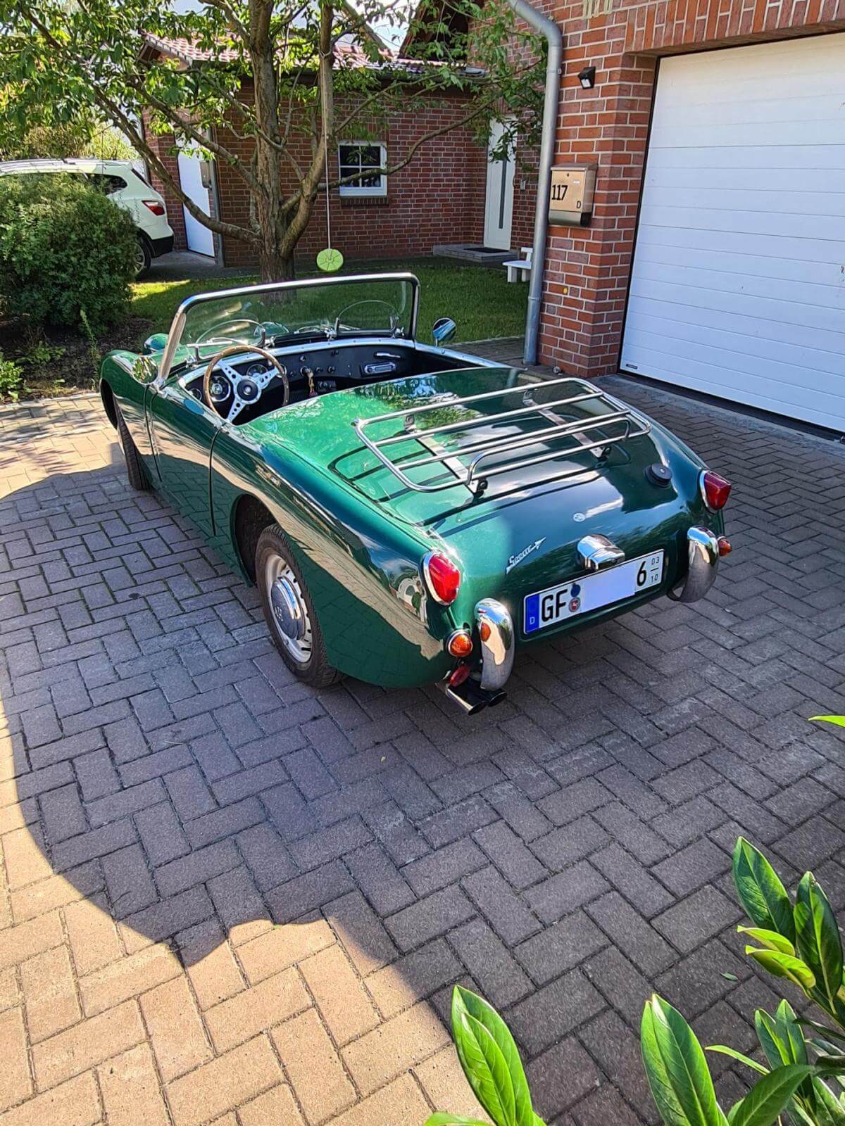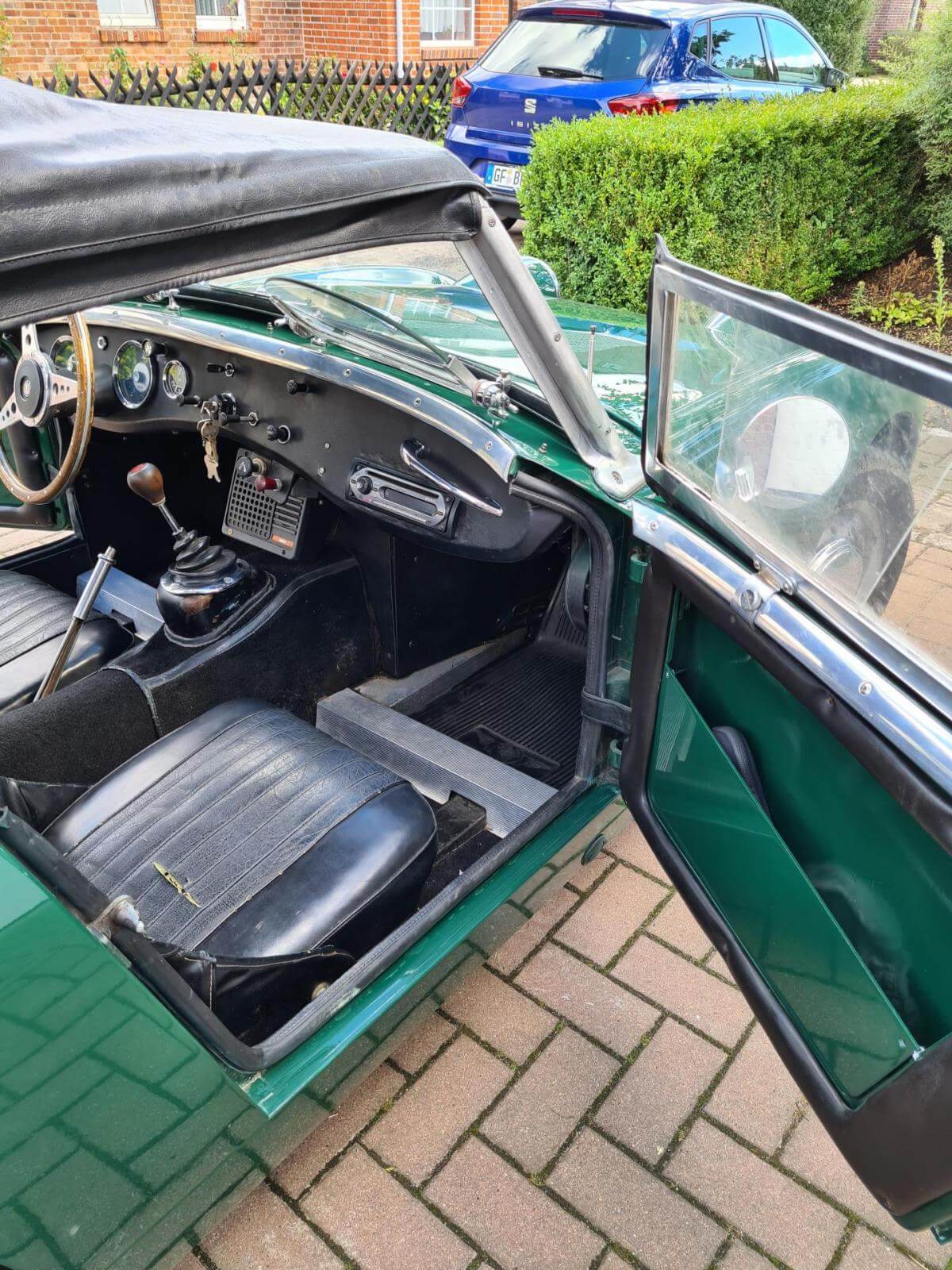 - Der Frosch hat den großen Motor mit 1.275 cm3 und 67 PS. Dies ist jedoch nicht in den Papieren eingetragen, sondern diese weisen nach wie vor 948cm3 aus. Dies war bei Kauf in 2006 schon so und wurde wohl damals in Kalifornien eingebaut. - Sehr viel Zubehör wie z.B. Verdeck, Cabrio-Abdeckung, Brooklands-Scheiben, Healey-Radkappen, Moto-Lita Holzlenkrad, Healey Gummimatte, Winterabdeckung. -Betriebsanleitung und Werkstatthandbuch in Deutsch vorhanden.Bekannte Mängel