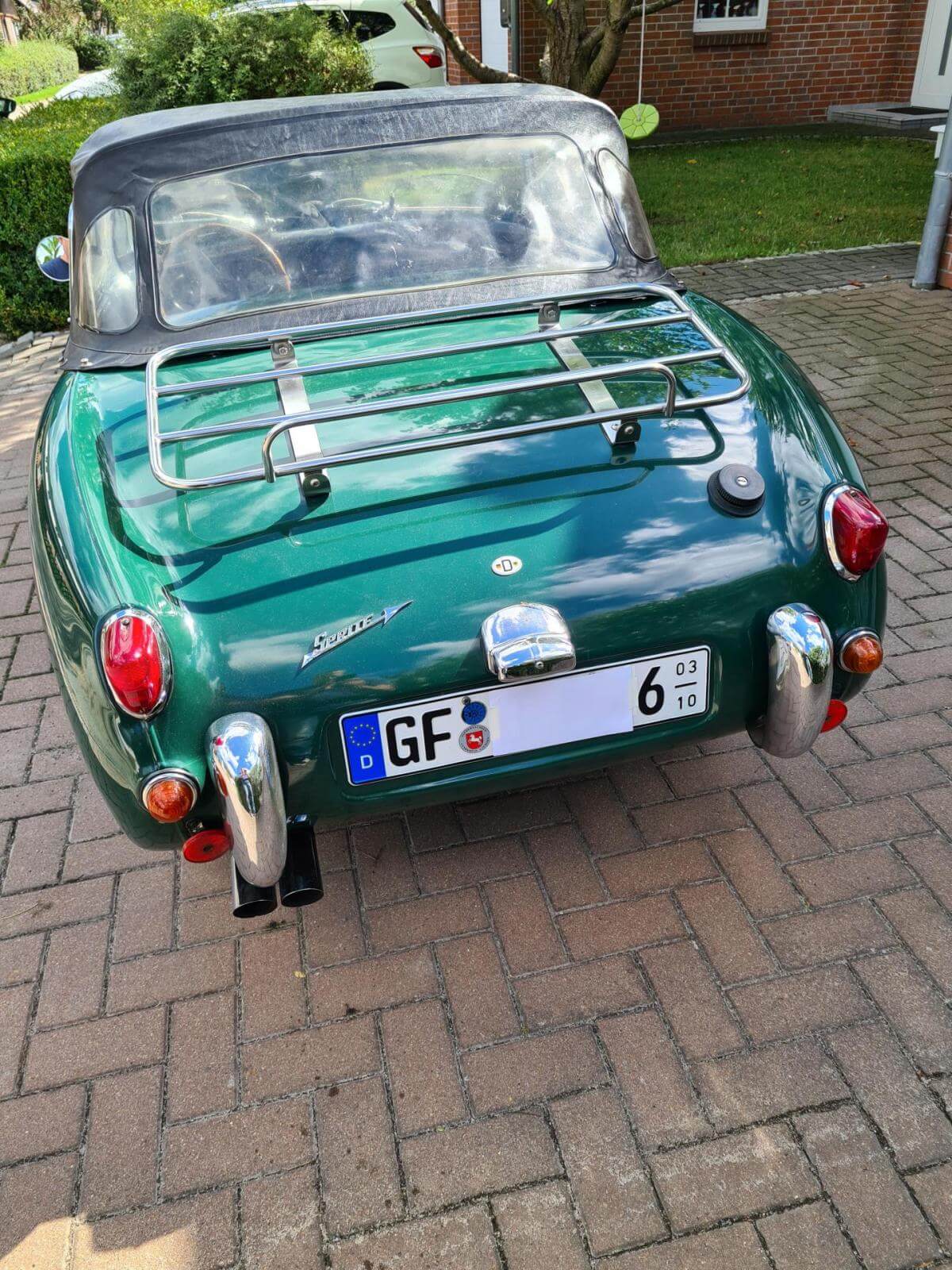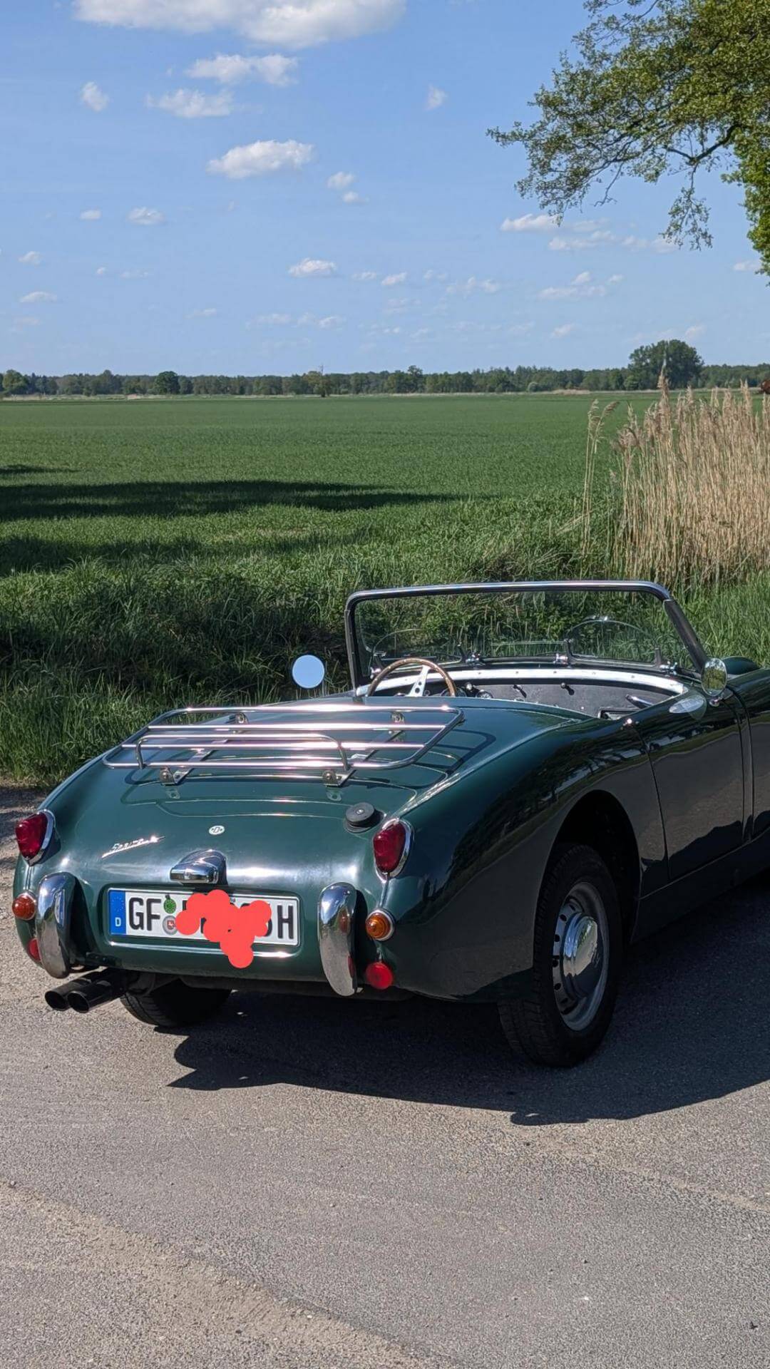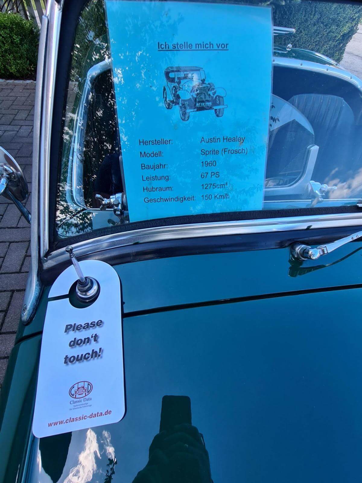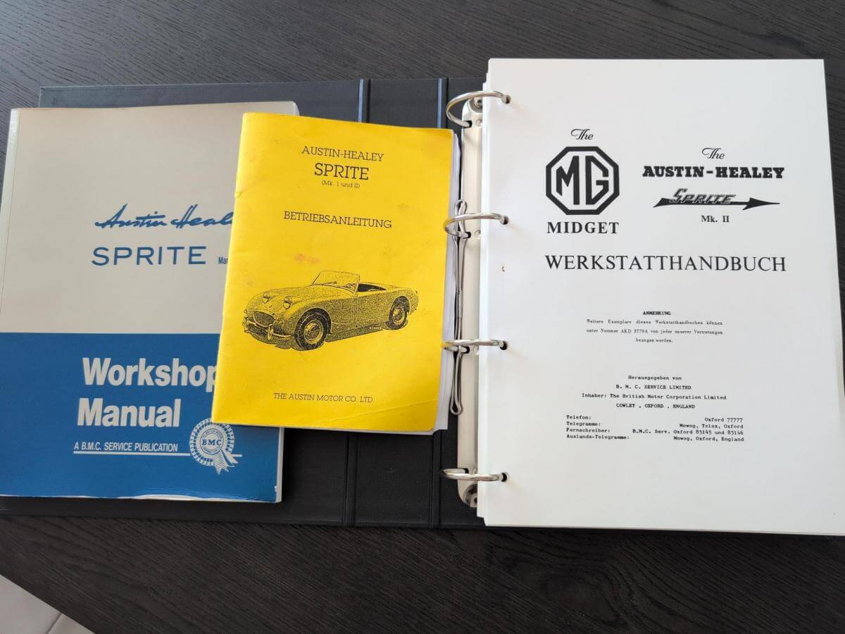 - Der Frosch hat den großen Motor mit 1.275 cm3 und 67 PS. Dies ist jedoch nicht in den Papieren eingetragen, sondern diese weisen nach wie vor 948cm3 aus. Dies war bei Kauf in 2006 schon so und wurde wohl damals in Kalifornien eingebaut. - Sehr viel Zubehör wie z.B. Verdeck, Cabrio-Abdeckung, Brooklands-Scheiben, Healey-Radkappen, Moto-Lita Holzlenkrad, Healey Gummimatte, Winterabdeckung. -Betriebsanleitung und Werkstatthandbuch in Deutsch vorhanden.Bekannte Mängel