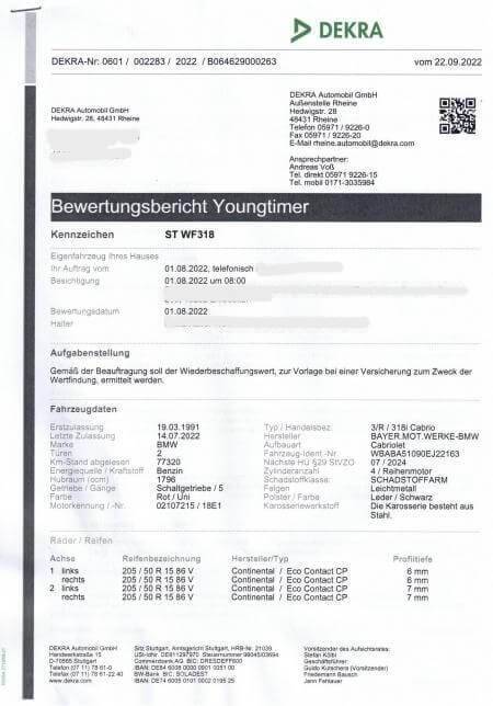 Dieser 318i verfügt über ein H-Kennzeichen, einen 1.8-Liter-Motor (1800 cm³), TÜV und bietet außerdem zahlreiche Extras wie z.B. eine Alarmanlage und eine abnehmbare Anhängerkupplung.