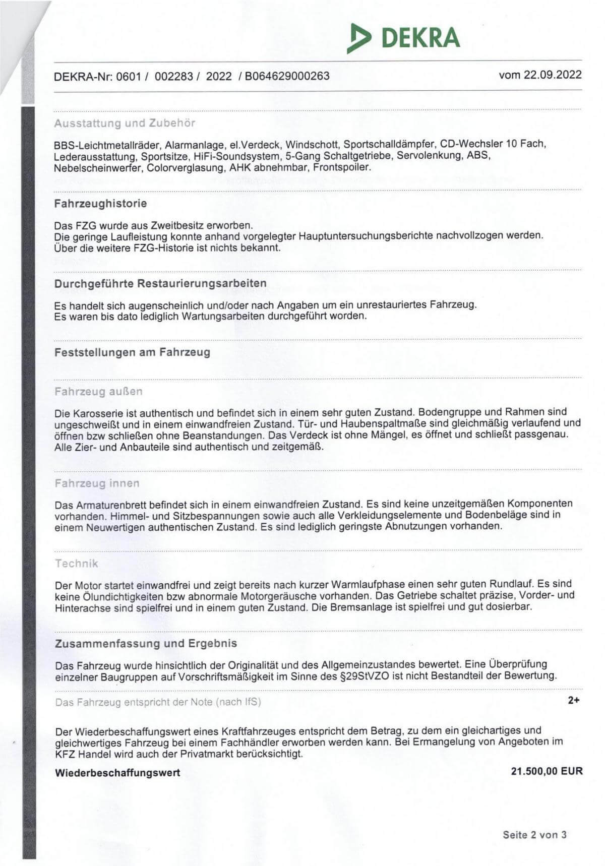 Das Fahrzeug präsentiert sich in der beliebten Farbkombination Rot außen und Schwarz innen, ausgestattet mit edlem Vollleder-Interieur, das sowohl sportlich als auch zeitlos wirkt. Ein aktuelles Gutachten mit der Note 2+ bestätigt den hervorragenden Gesamtzustand dieses Klassikers.