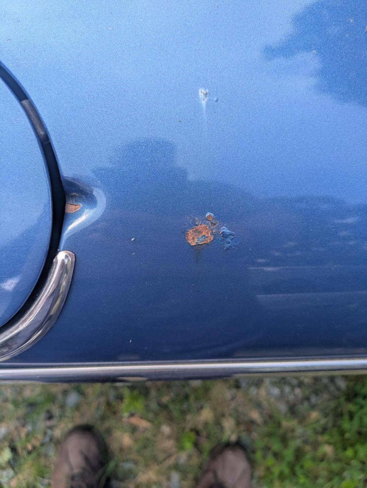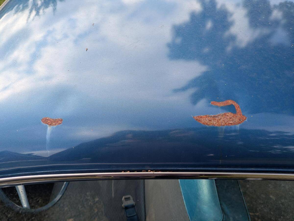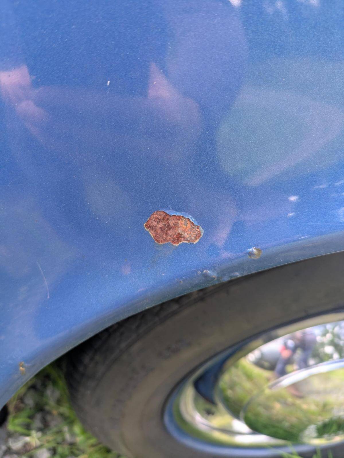 Delle mit Korrosion am Dach, div. kleine Roststellen / Lackabplatzer an den Radläufen hinten Außen (Größe mit Lackstift heilbar)