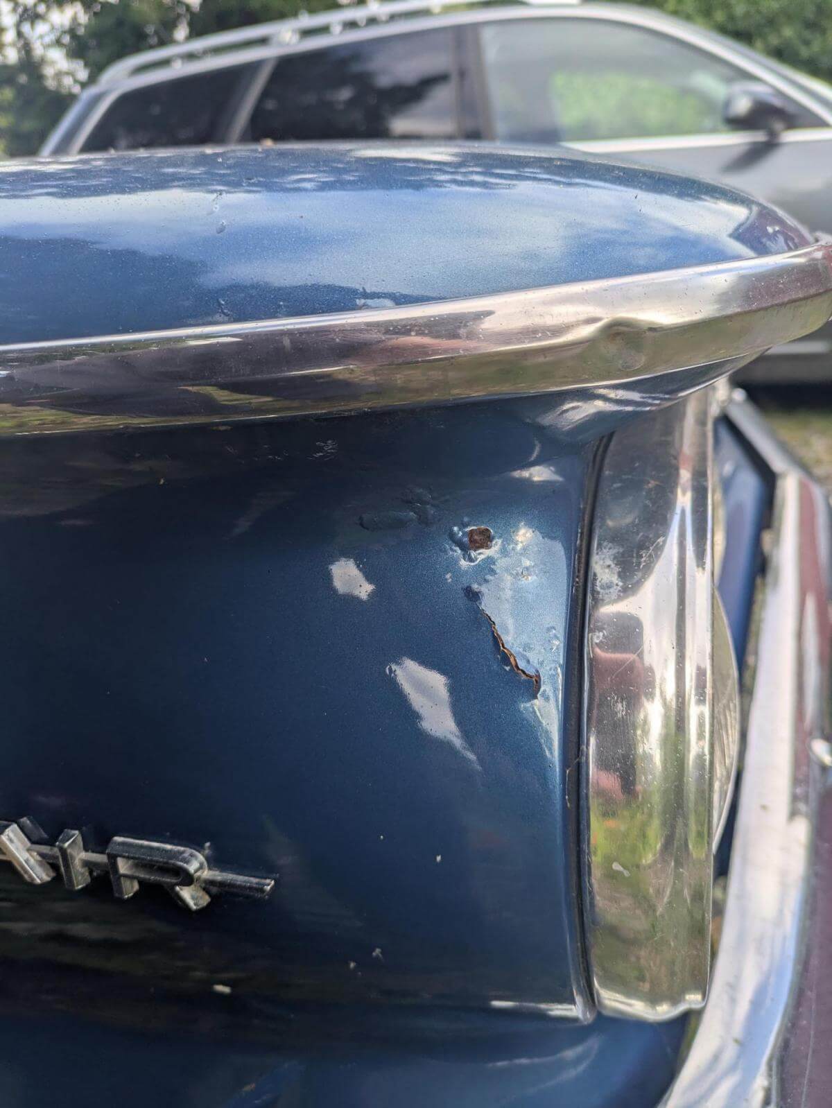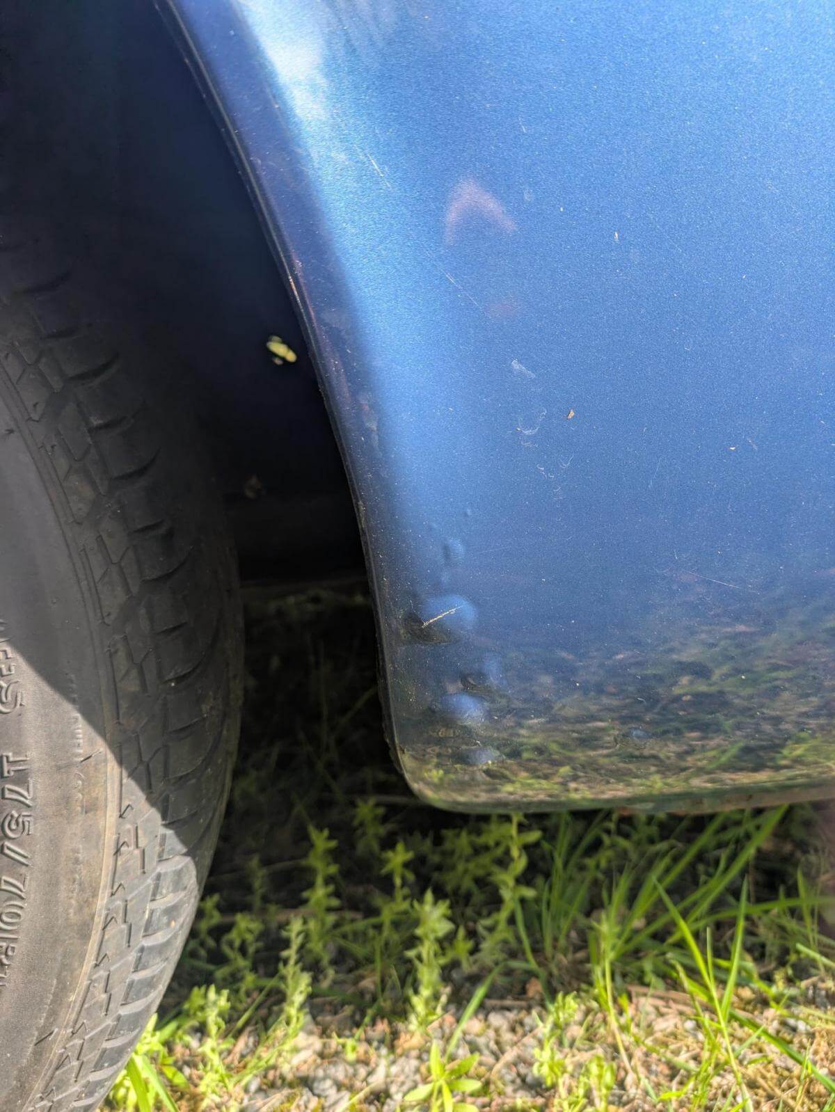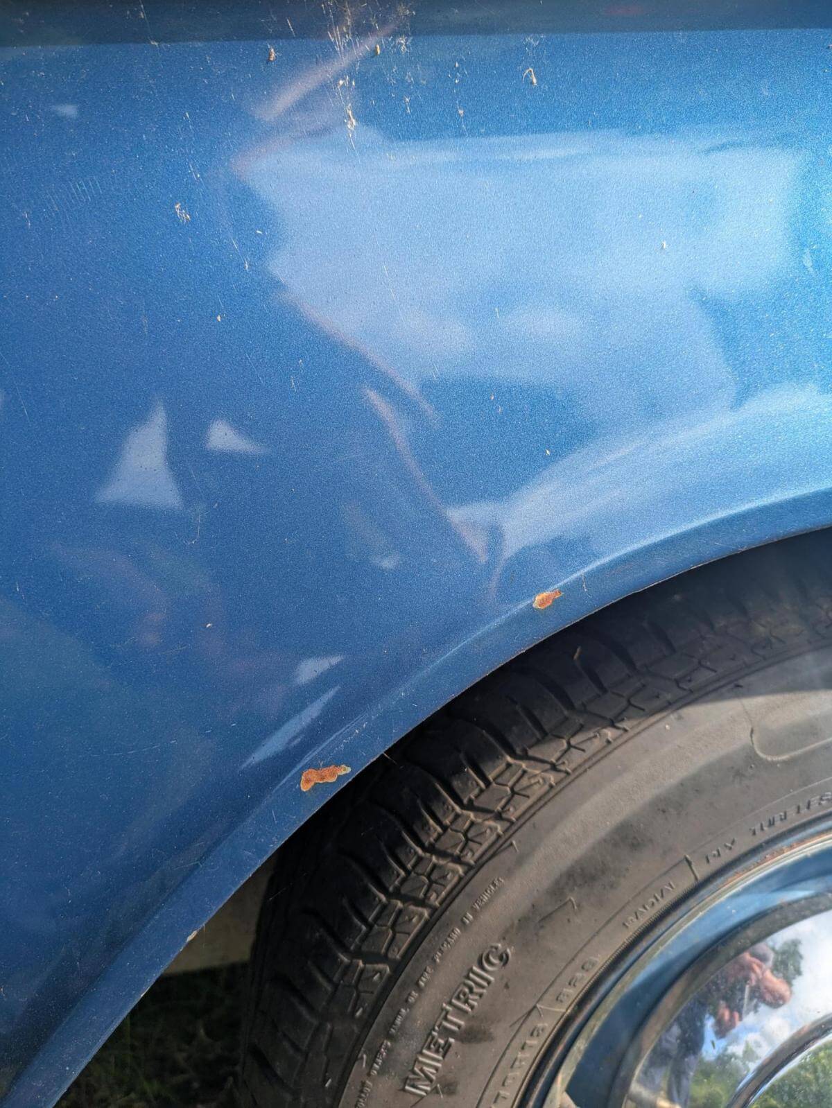 Delle mit Korrosion am Dach, div. kleine Roststellen / Lackabplatzer an den Radläufen hinten Außen (Größe mit Lackstift heilbar)