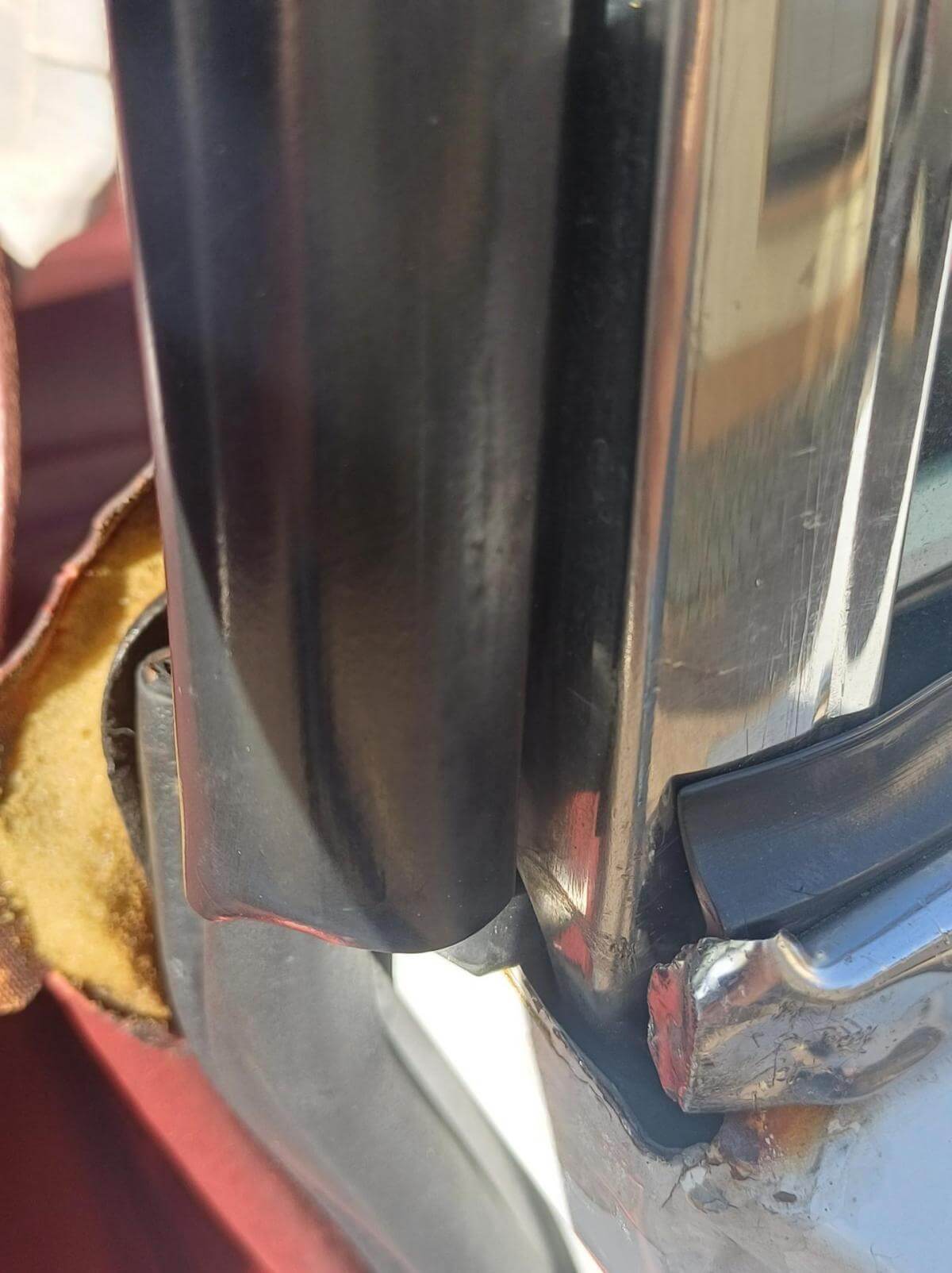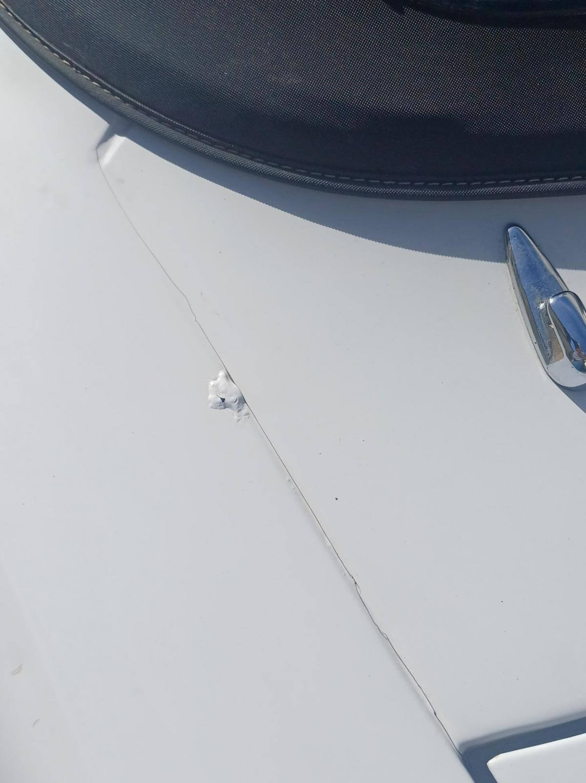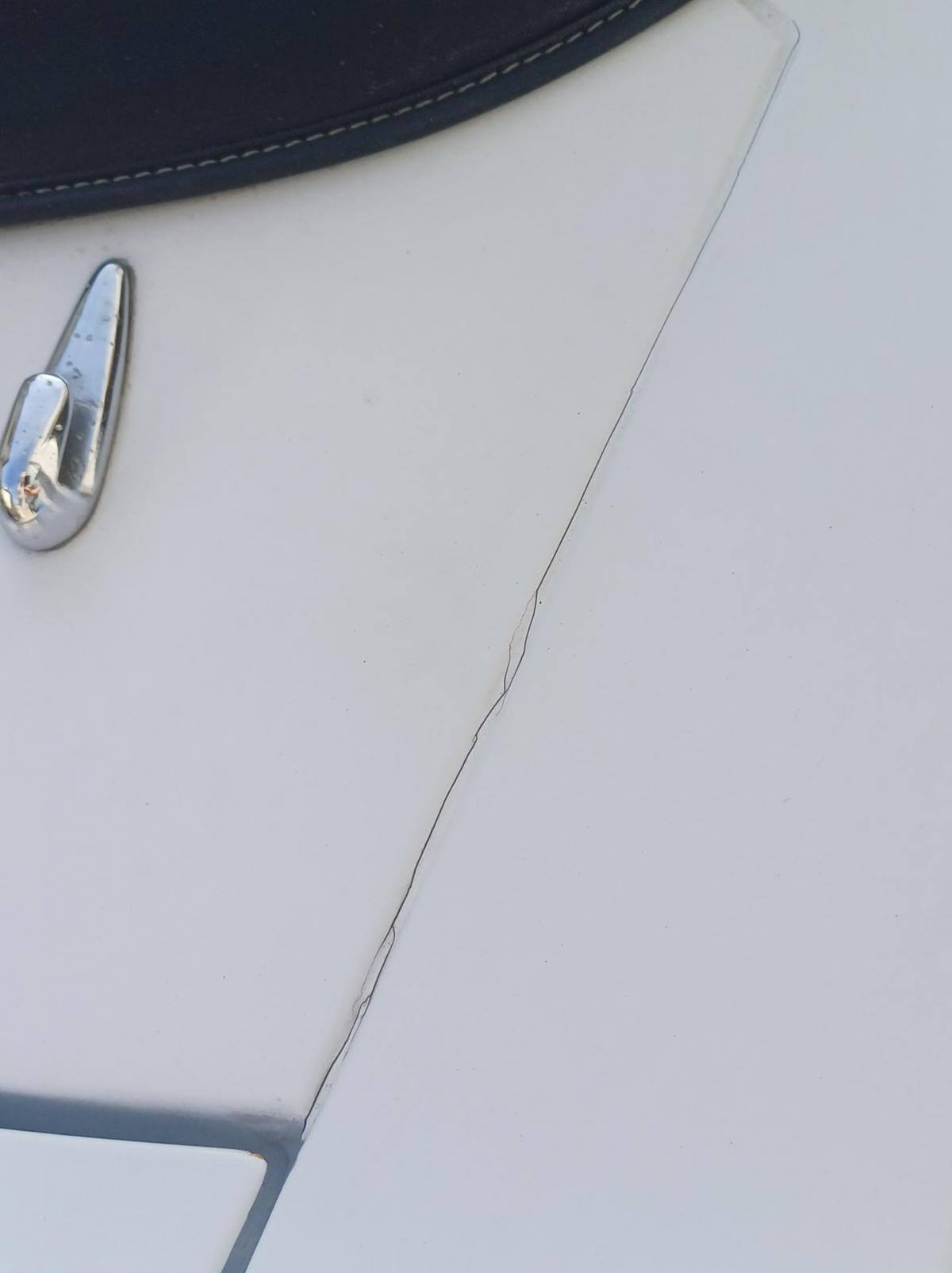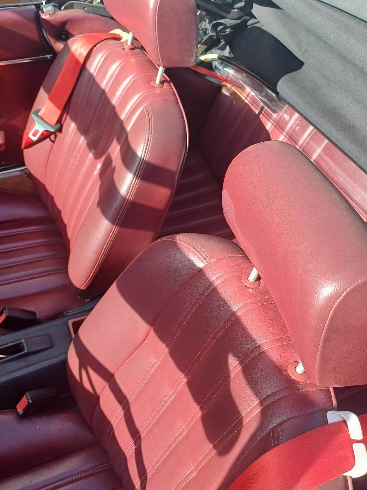 Weitere, uns bekannte Mängel sind auf den Bildern dokumentiert. Die Zierleiste der Fahrerseite schiebt sich beim Schließen des Daches nach vorne und die Abdeckung des Armaturenbrettes sitzt nicht mehr richtig in der Führung. Der Bezug des Fahrersitzes hat Risse und muss erneuert oder ausgebessert werden. Der Sitz des Fahrers neigt sich nach rechts. Vorgänger hat wahrscheinich stets aus dem Sitzen heraus das Dach geschlossen. Das Deck des Radios lässt sich abnehmen damit es bei geöffnetem Dach vor Diebstahl gesichert ist. Der Knopf zum Entnehmen fehlt. Es kann trotzdem entnommen werden. Ob es dafür noch ein Ersatzteil gibt ist fraglich. Bild vom Innenbereich zeigt Foto mit und ohne abnehmbares Radioteil. Zigarettenanzünder und Uhr funktionieren nicht. Stoffdach innen nicht ausreichend verklebt.