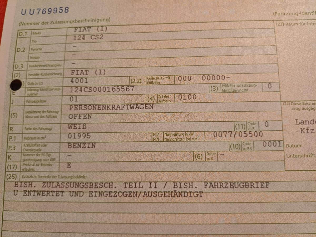 | Modell-Bezeichnung | 124 CS2 Spider Pininfarina Cabriolet |
