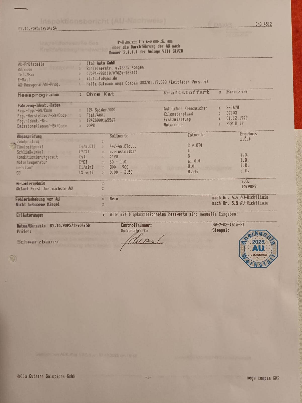 | Nächste HU fällig | 10/27 |