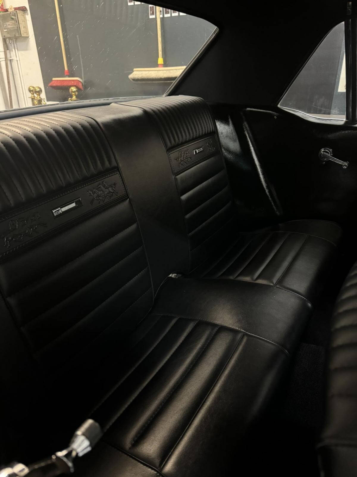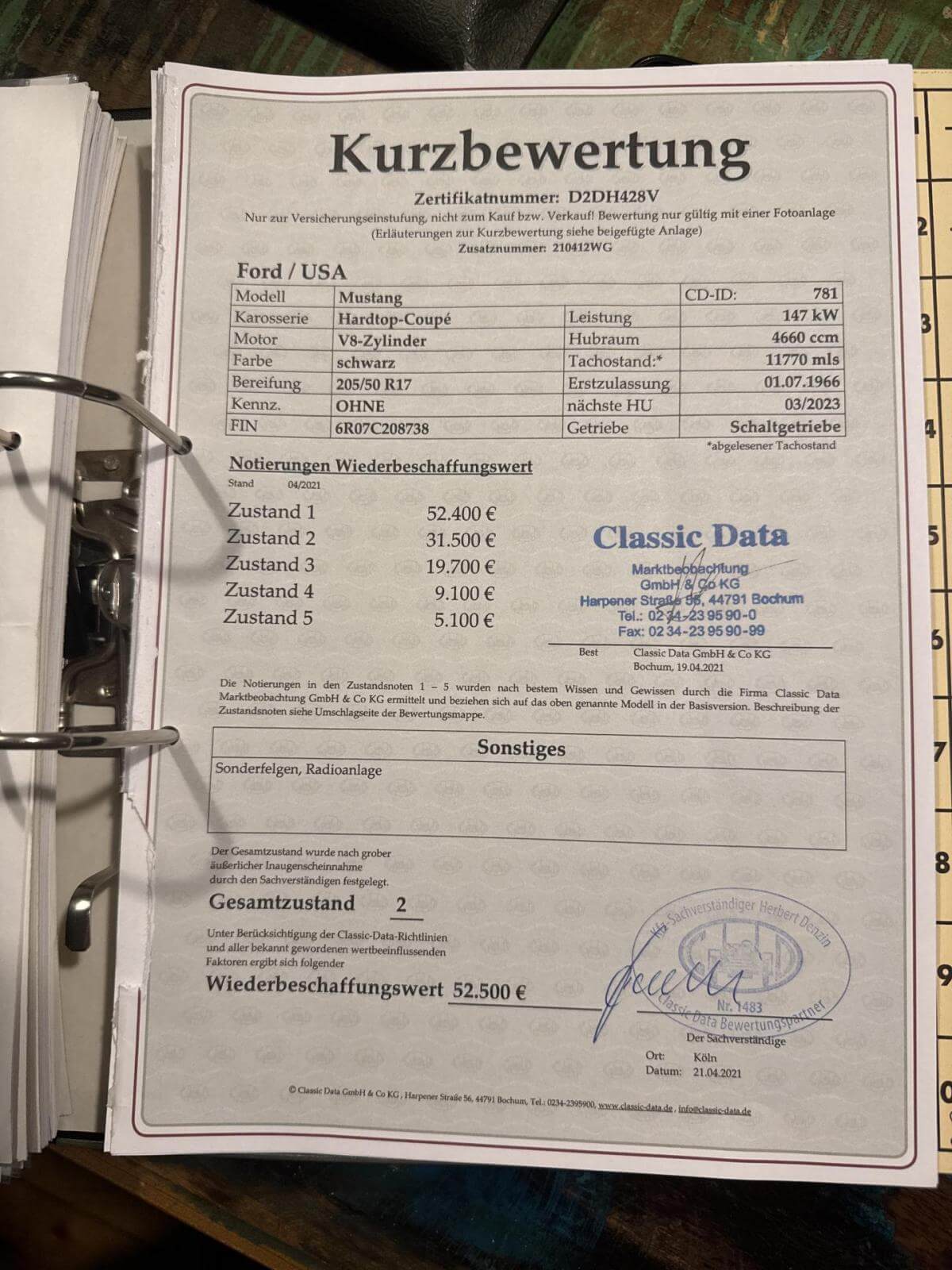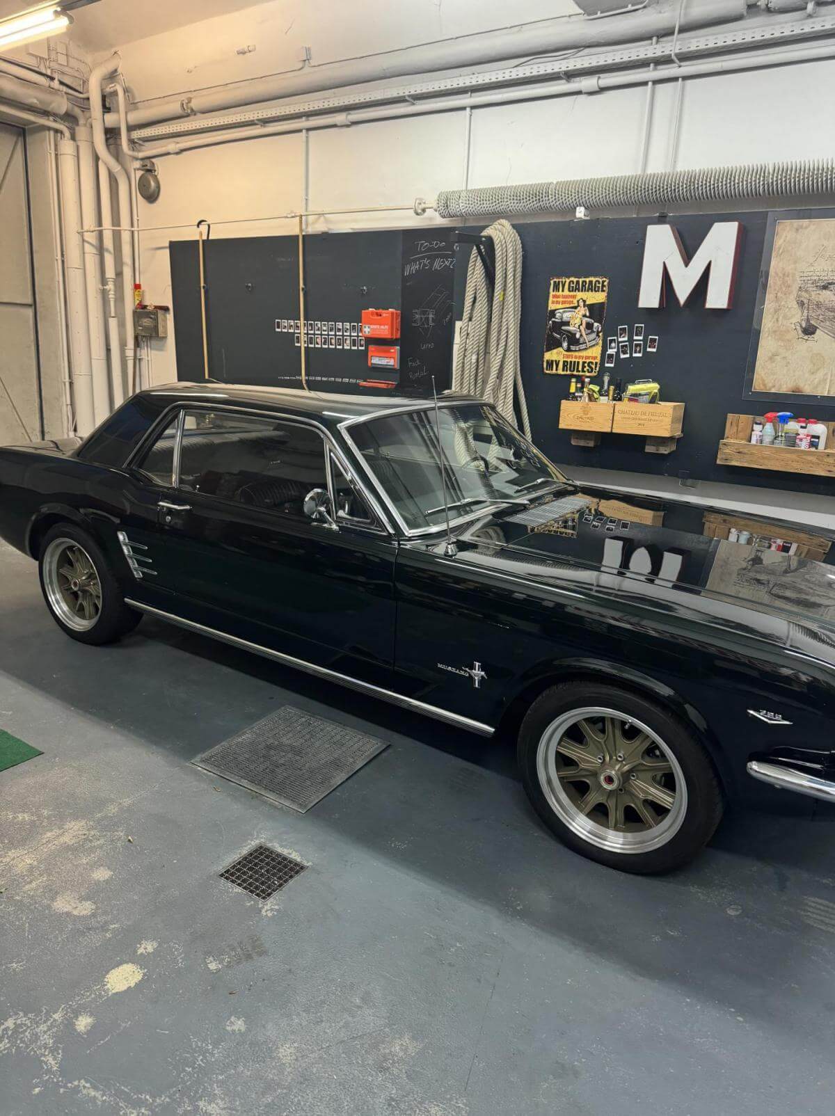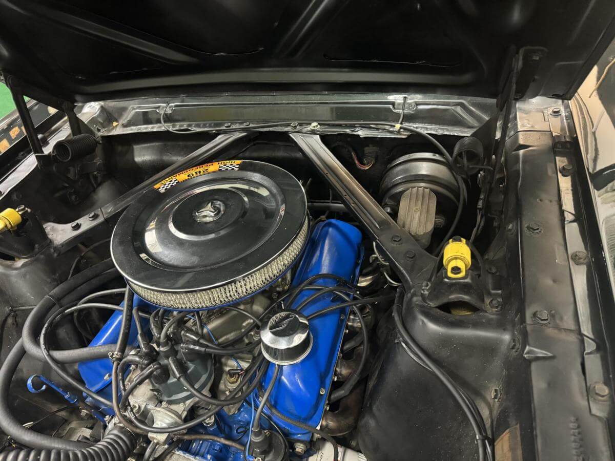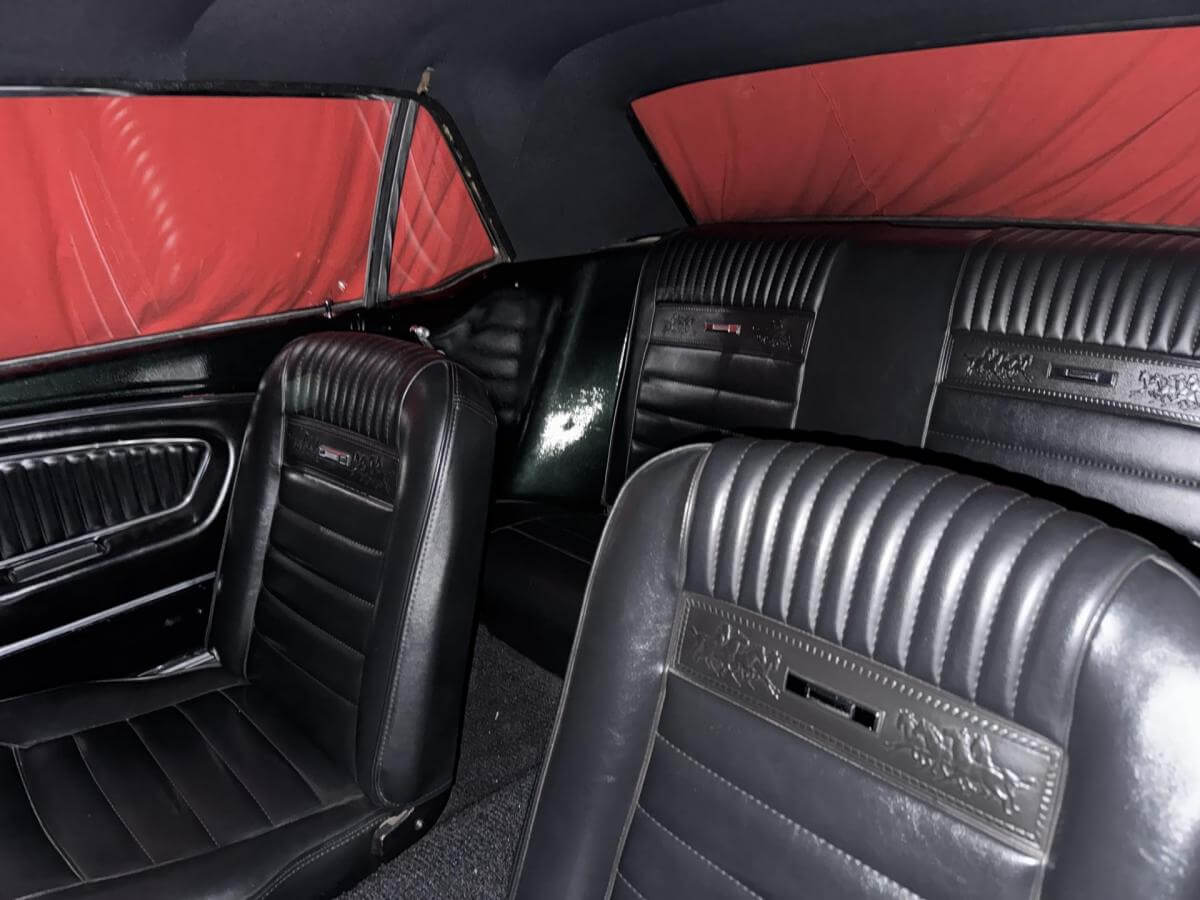 4 Gang Schalter, Scheibenbremsen Vorne und Hinten, Bremskraftverstärker, Flowmaster Doppelauspuffanlage, Pony Deluxe Innenausstattung.Bekannte Mängel