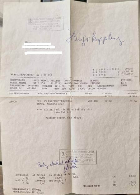 Dieser Prelude besitzt ein H-Kennzeichen und TÜV sowie eine abnehmbare Anhängerkupplung.