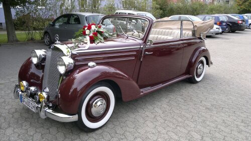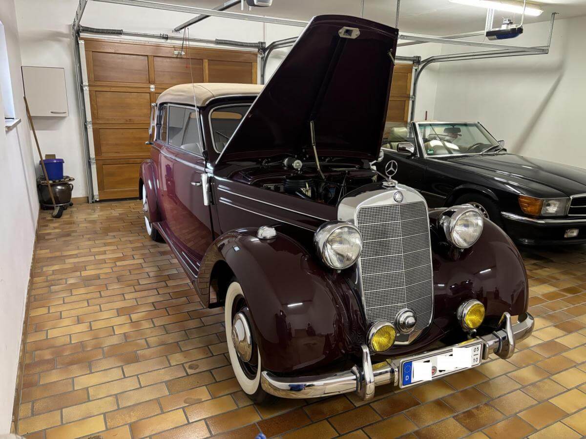 Der Mercedes‑Benz 170 S Cabriolet B von 1950, ist ein eleganter Oldtimer mit vier Sitzen – perfekt restauriert und mit dem charakteristischen Charme der Nachkriegsjahre. Er wurde von 1949 bis 1955 gebaut und war das erste Mercedes-Modell mit dem Zusatz „S” für Sondermodell, das für die besondere Qualität und den Komfort steht.