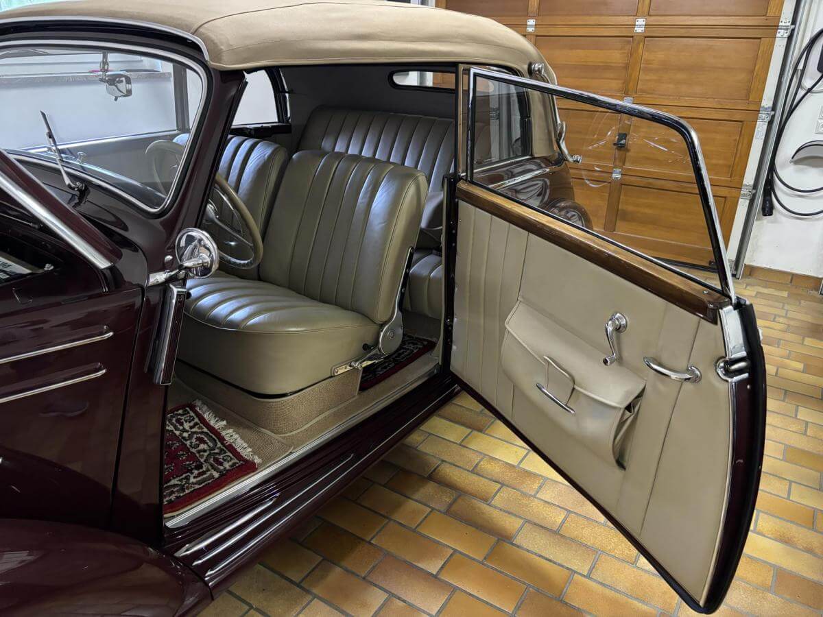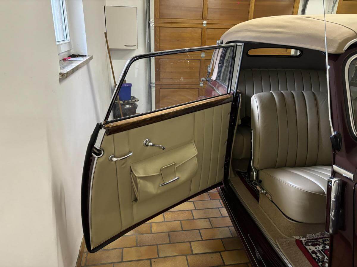 Die rotbraune Außenlackierung in Verbindung mit dem beigen Lederinterieur verleiht diesem Klassiker eine besonders stilvolle und elegante Erscheinung.