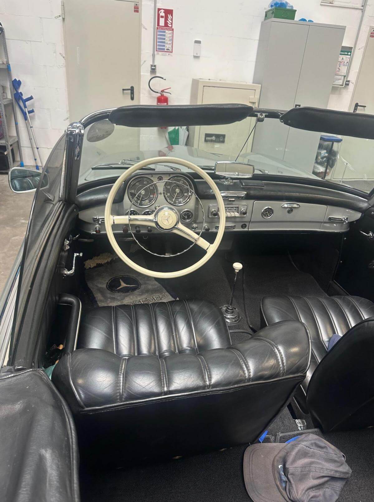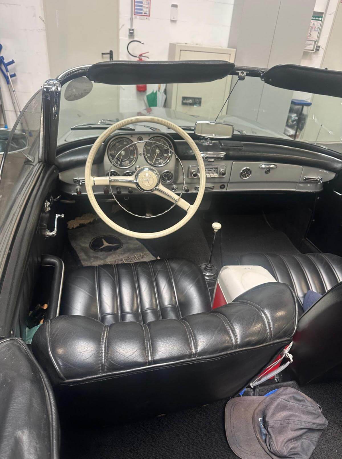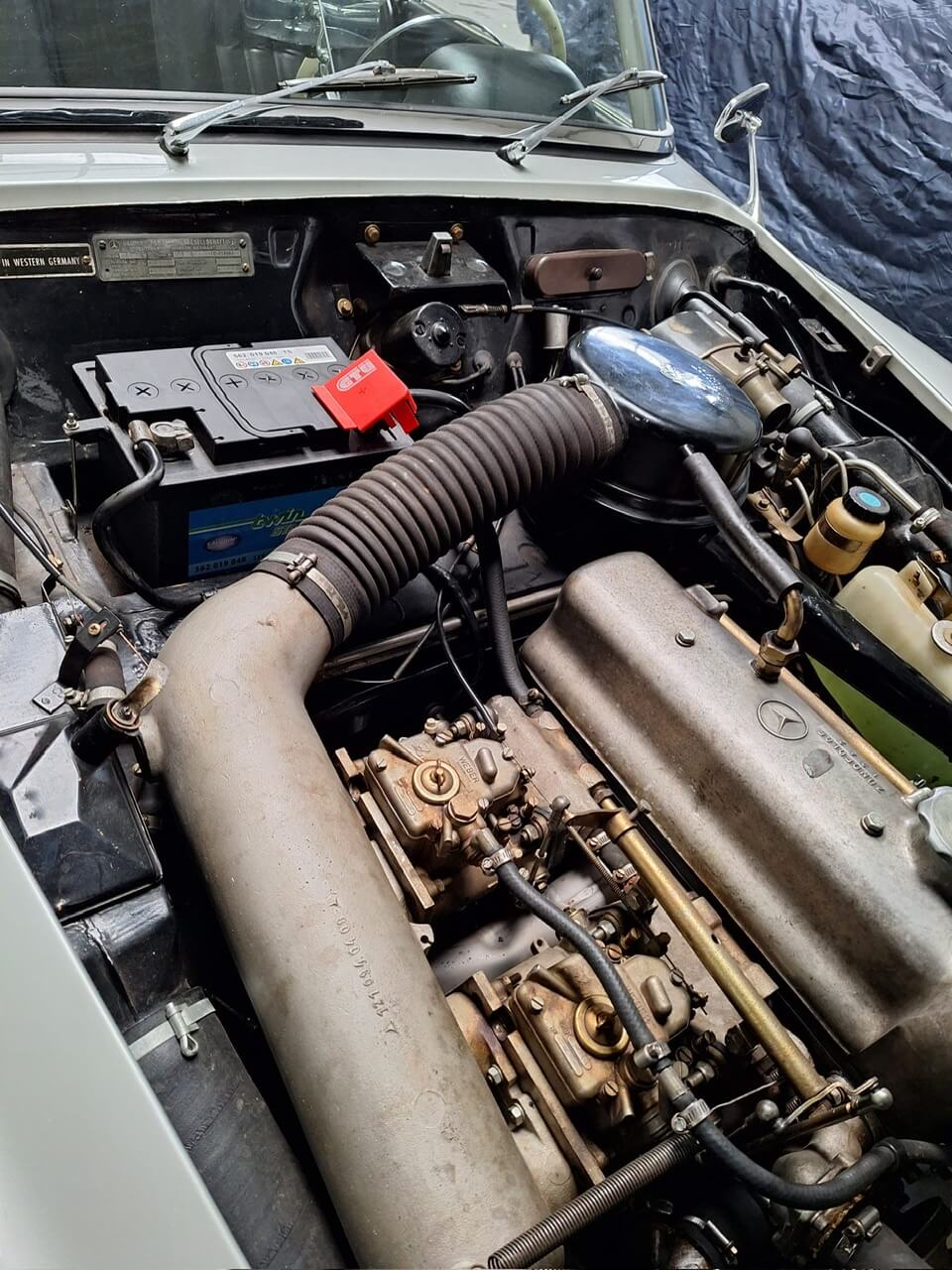 Dieser 190 SL verfügt über ein H-Kennzeichen und TÜV. Ein Gutachten mit der Note 2 bestätigt den ausgezeichneten Zustand. Der Kilometerstand liegt bei nur 31.000 km!