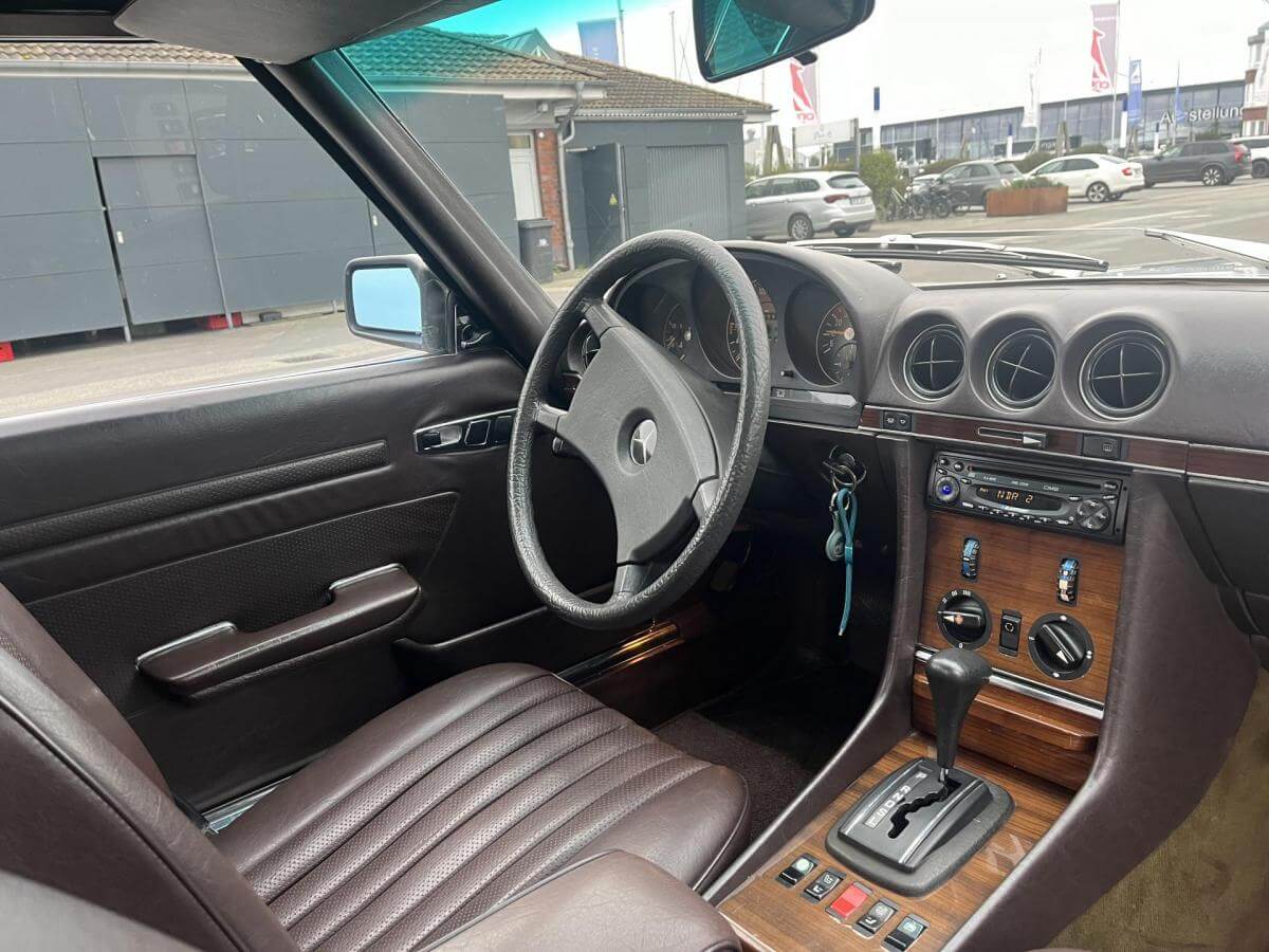 Der Mercedes-Benz 280 SL-Cabriolet, erstmals 1982 in Italien zugelassen, vereint bis heute zeitlose Eleganz, hohen Komfort und sportlichen Fahrspaß. Er ist ein sehr eleganter Vertreter der legendären SL-Baureihe R107 und verfügt über einen Reihensechszylinder Motor mit 2.746 cm³ Hubraum.