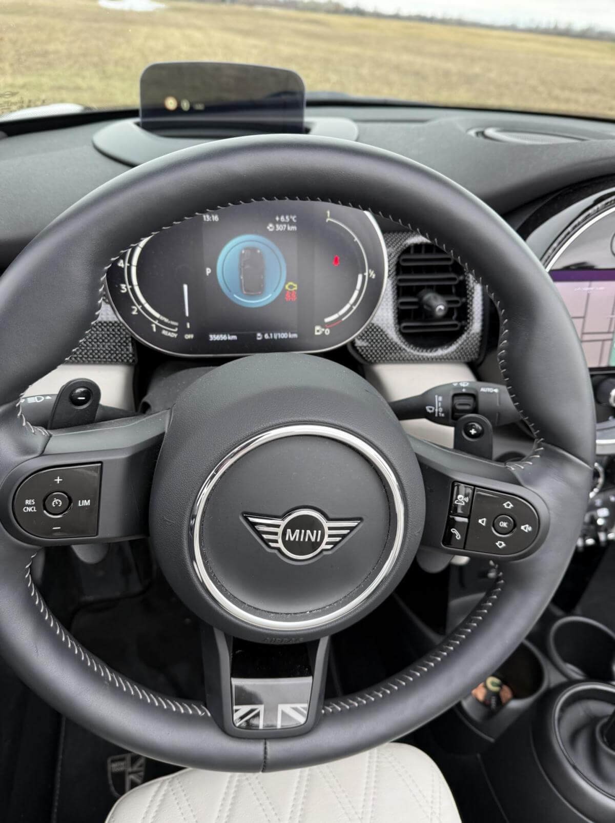 Unter der Haube arbeitet der bewährte 2,0-Liter-Turbo (1.998 ccm), der mit seinem sichtbaren Doppelauspuff und dem typisch knurrigen Cooper-S-Sound echtes Go-Kart-Feeling vermittelt.