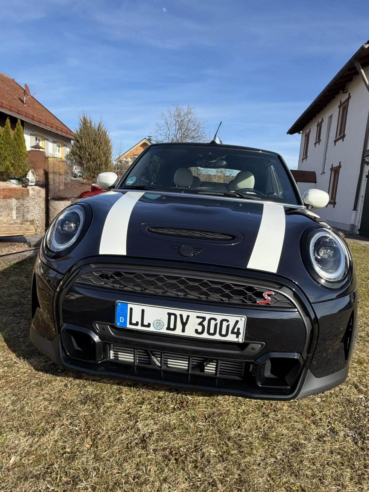 Komplettausstattung im MINI YOURS Trim: enigmatic black metallic, Leder Chester satellite grey, 17″ Roulette Spoke 2 Tone, Piano Black exteriur., Spiegelkappen und Motorhaubenstreifen weiss, MINI Connected XL, Head-up Display, Windschott, Sitzheizung, Lenkradheizung, Harman Kardon Sound System, Verdeck MINI Yours (Union Jack), auf Wunsch: 4 Winterkompletträder JCW Multi Spoke 505, jet black matt mit Dunlop SP Winter Sport, 205/45 R17Bekannte Mängel
