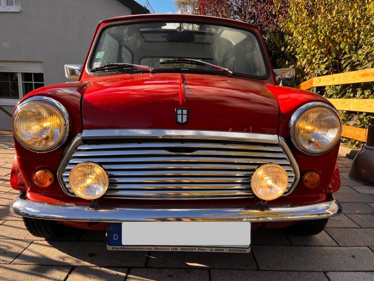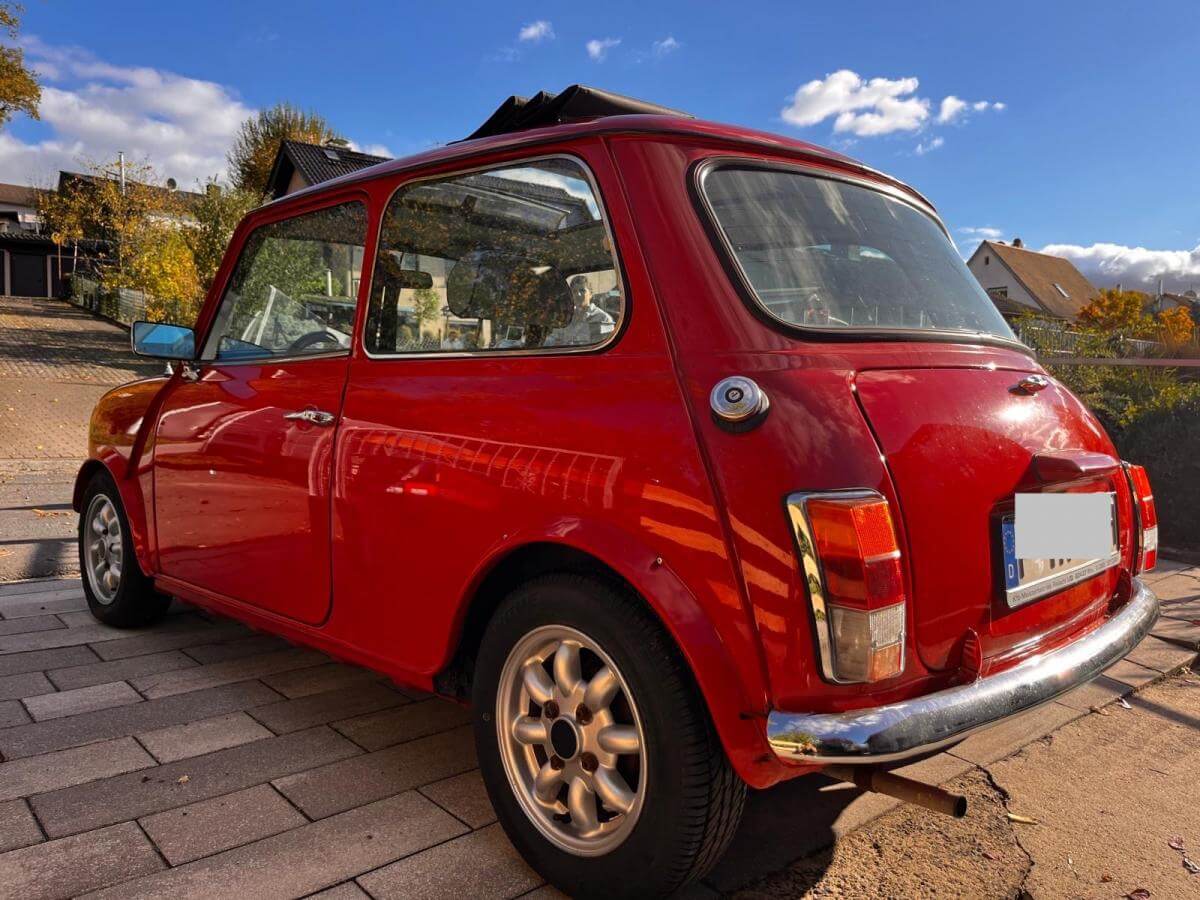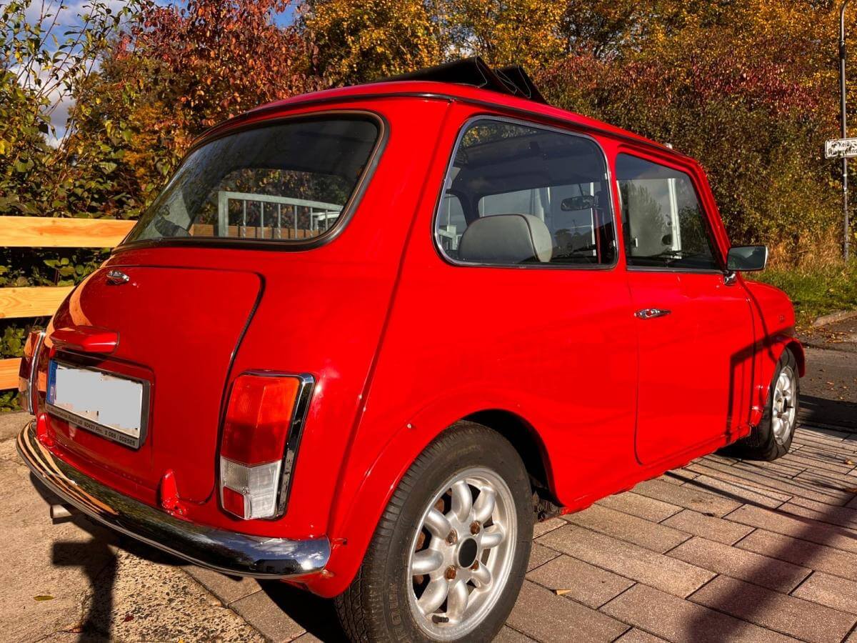 Dieser rote Mini ist ein liebevoll gepflegter Klassiker, der schon beim ersten Blick das Herz von Liebhabern höherschlagen lässt. Im Innenraum erwarten dich edle, graue Ledersitze, die Komfort und Stil perfekt vereinen. Das Schiebedach lädt dazu ein, den Fahrtwind zu spüren und das besondere Gefühl des offenen Fahrens in einem echten Kultauto zu genießen.