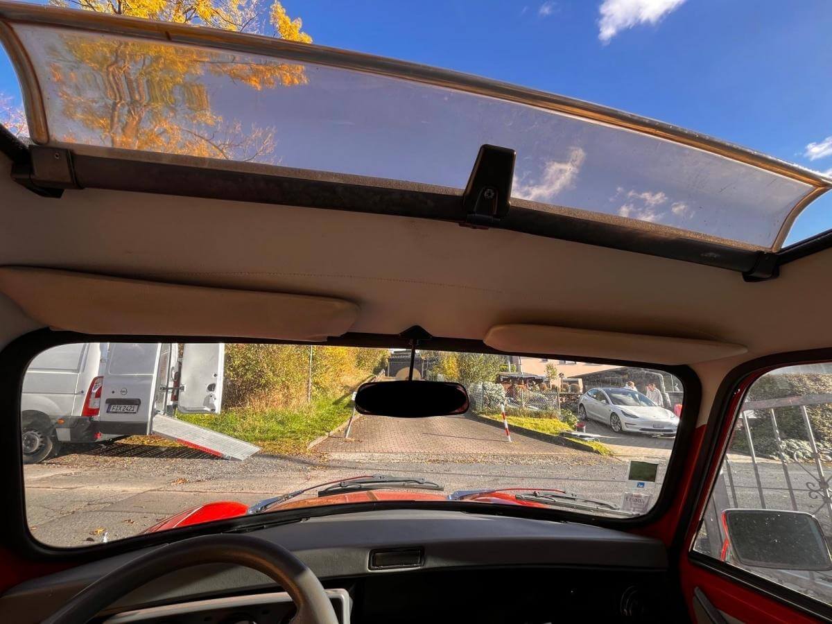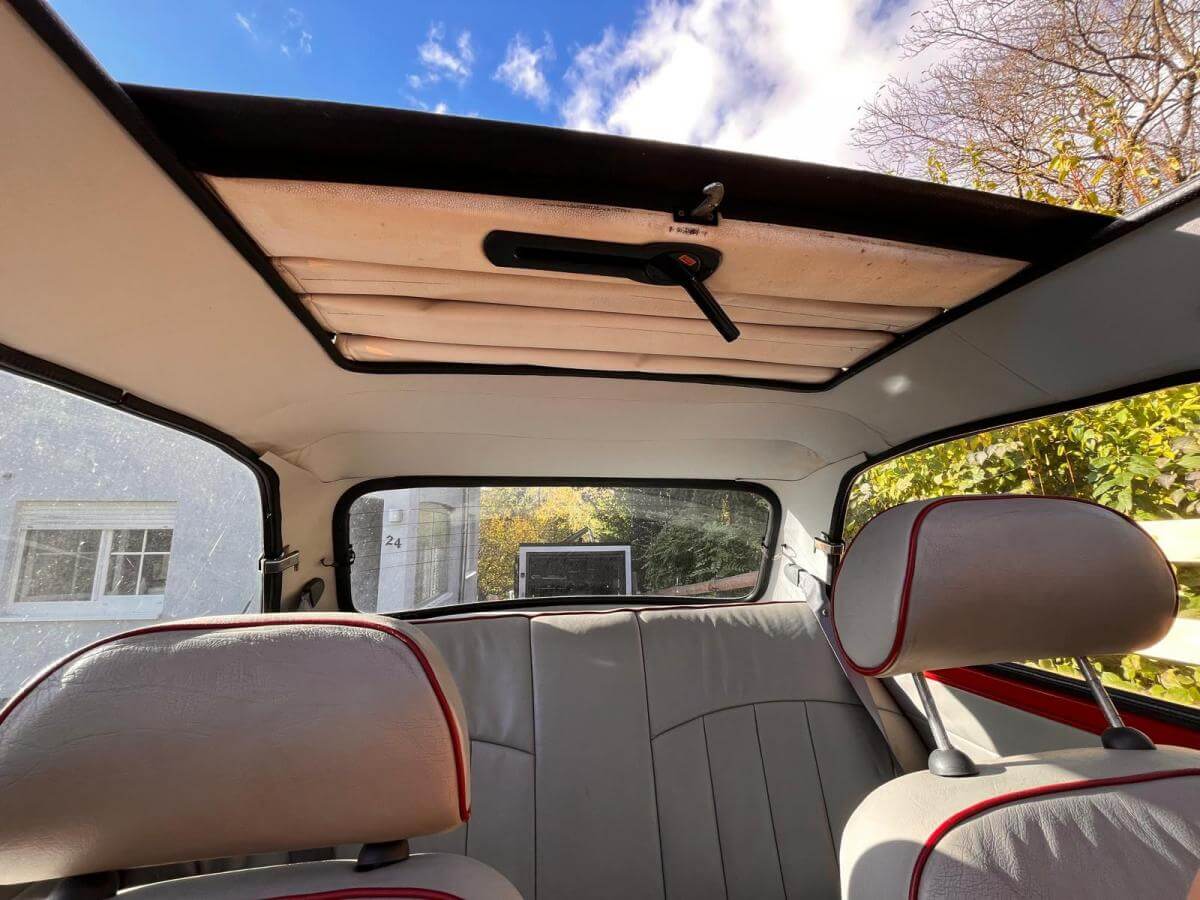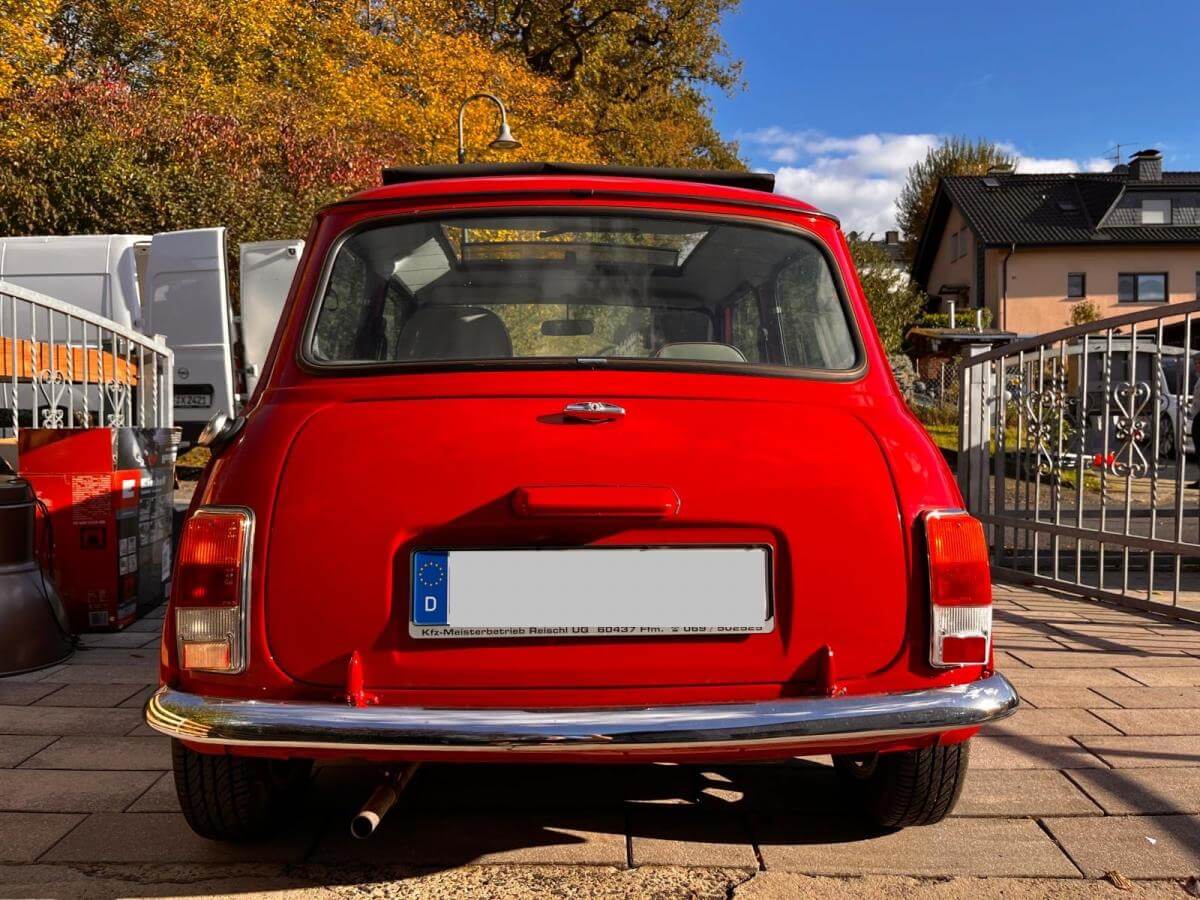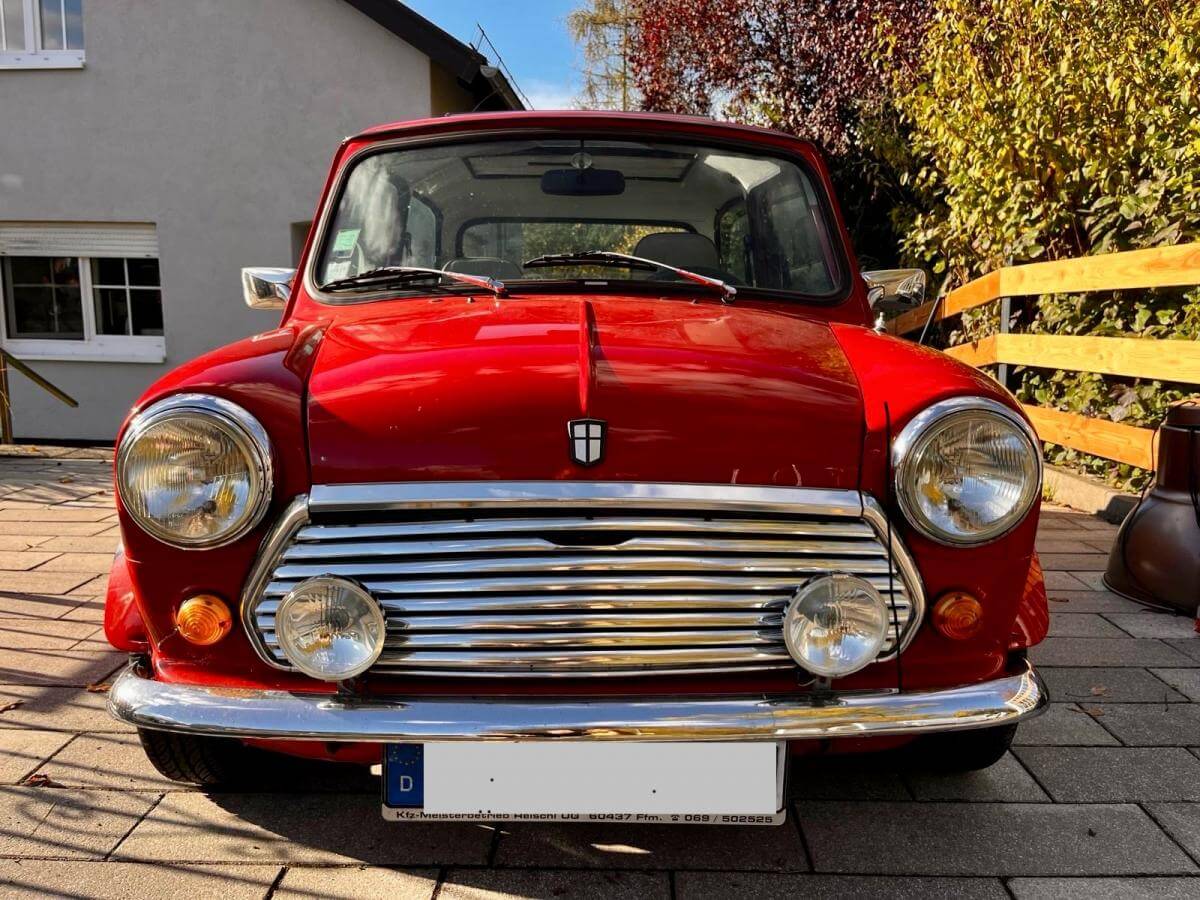 Dieser rote Mini ist ein liebevoll gepflegter Klassiker, der schon beim ersten Blick das Herz von Liebhabern höherschlagen lässt. Im Innenraum erwarten dich edle, graue Ledersitze, die Komfort und Stil perfekt vereinen. Das Schiebedach lädt dazu ein, den Fahrtwind zu spüren und das besondere Gefühl des offenen Fahrens in einem echten Kultauto zu genießen.