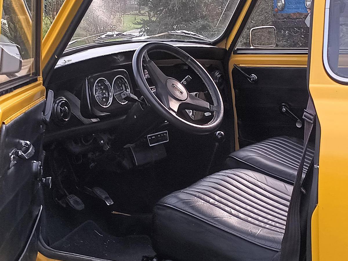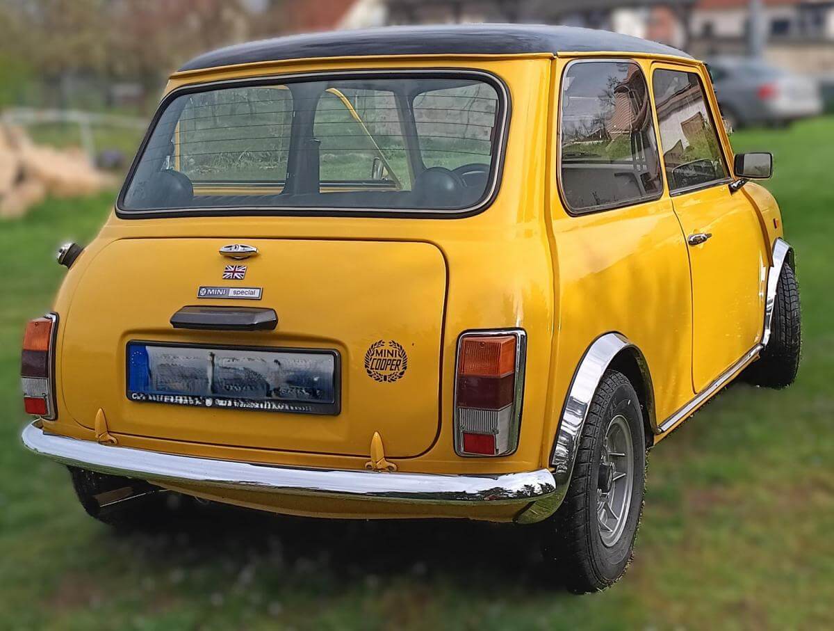 Dieser Mini MK II Special Oldtimer von 1974 ist ein seltener Vertreter des klassischen MK II, ausgestattet mit einem 1083 cm³ A-Series-Motor. Er ist optisch markant durch ein eckiges Kühlergrilldesign und größere Rückleuchten sowie ein deutlich vergrößertes Heckfenster.