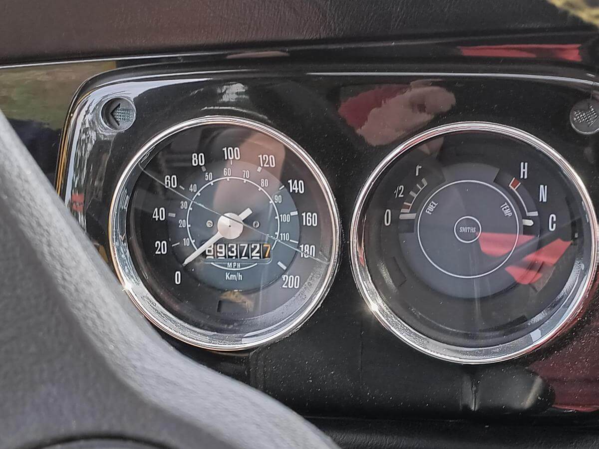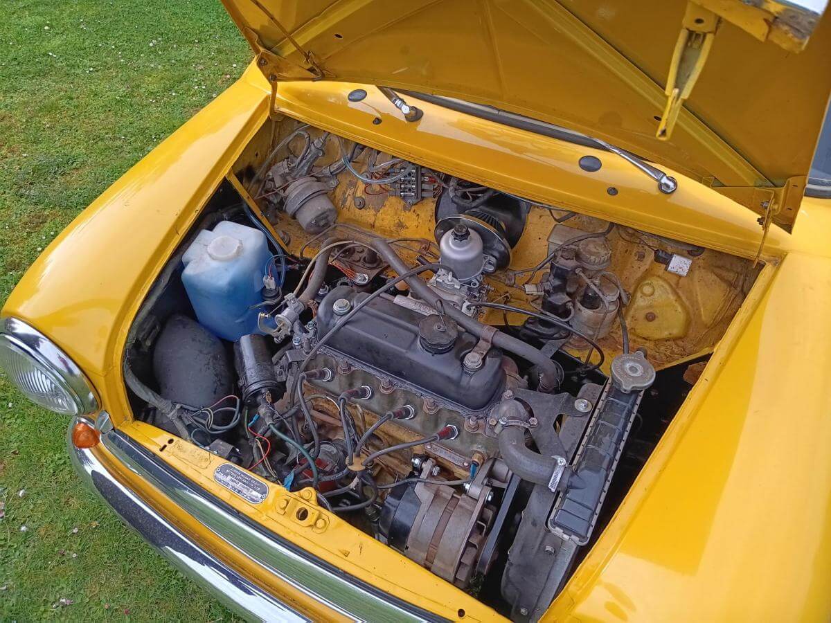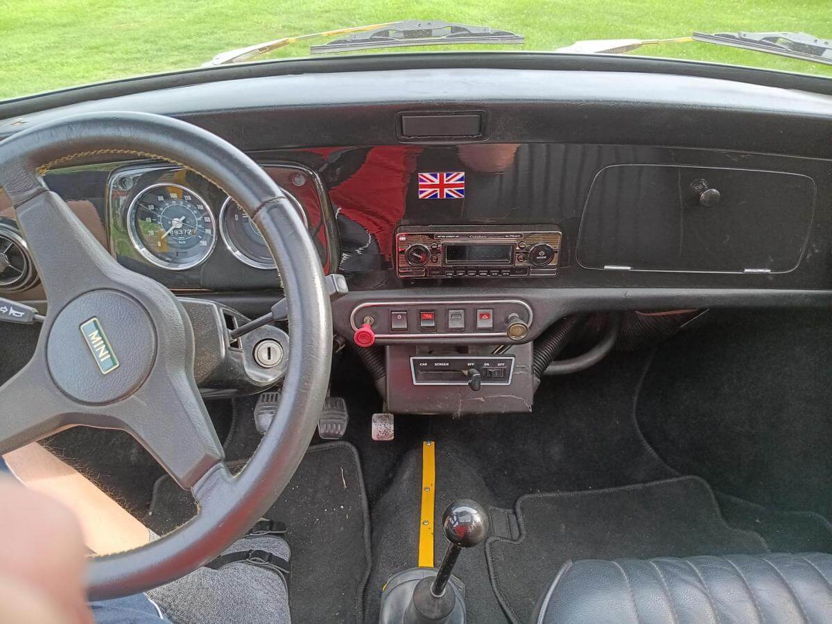 Die schwarz-gelbe Lackierung passt wunderbar zu den schwarzen Ledersitzen. Das Fahrzeug ist in einem guten Zustand (Gutachten der Note 2- liegt vor) und wurde bereits restauriert. Bei der Restauration wurden ausschließlich englische Bauteile verbaut. Es verfügt über einige Extras wie z.B. ein Retro Blaupunkt Radio (Soundanlage) und ein Klappdach aus Glas.