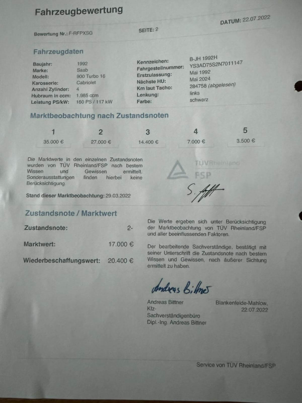 Regelmäßige Werkstattwartungen, Belege sind vorhanden. (Saab Pinkowski Berlin)