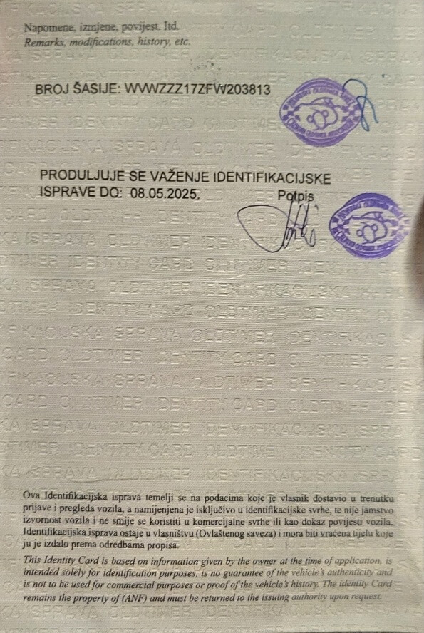 Oldtimer mit Zertifikat.
